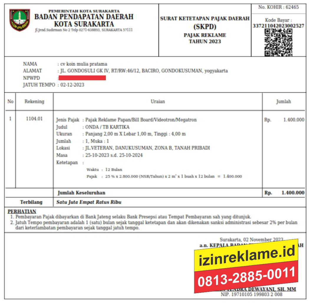 Biaya Jasa Izin Reklame
